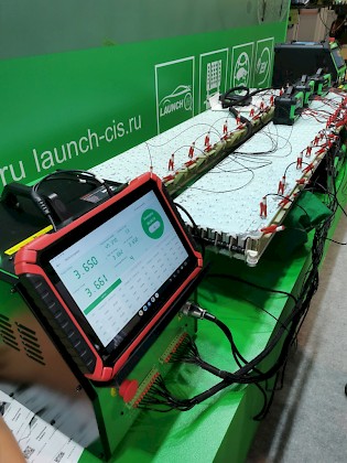 Еще одной точкой притяжения, как и планировалось, стал соседний стенд наших дистрибьюторов компании Технологии Автосервиса (ТА), на котором также демонстрировались современные решения для диагностики, ADAS, бесконтактных стендов сход-развал, заправок кондиционеров, обслуживания АКПП и многое другое, в т.ч. подъемное оборудование LAUNCH. Надо сказать, что коллеги из Технологий Автосервиса работали все эти дни на два фронта (стенда), т.к. бо'льшая часть EV экспозиции находилась под крылом LAUNCH. И честно сказать, без их помощи, особенно Игоря Васильевича Иваницы мы бы просто не справились. Он как наиболее знающий и опытный специалист-электрик и диагност практически безостановочно показывал и популярно объяснял на подключенных к реальным ВВ батареям приборах рабочие процессы выполнения пошаговых процедур проверки, выявления и восстановления/замены неисправных ячеек. Параллельно отвечая на множество вопросов по диагностике конкретных марок электромобилей, технике безопасности, аттестации персонала и т.п..
