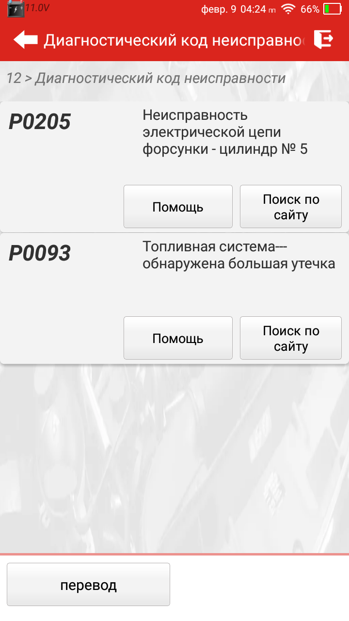- Чтение и удаление кодов ошибок по протоколу OBDII