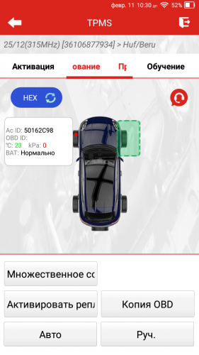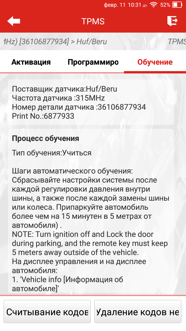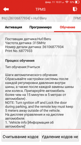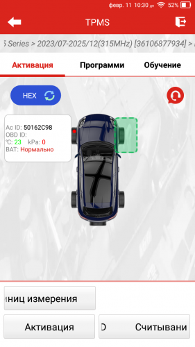 Активация, программирование и повторное обучение датчиков TPMS |